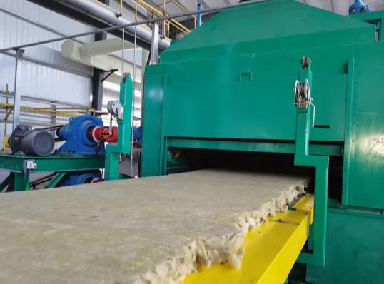 During fiber formation, binders are sprayed into the fiber molding chamber while negative pressure wind heats and draws the fibers downward onto the mesh belt to form the original felt. The pendulum cloth machine then processes the felt before it enters the curing furnace, where hot air solidifies the material. Finally, the product undergoes precision cutting (both longitudinal and transverse) before packaging and storage.